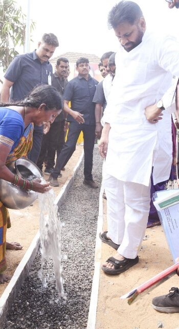 The Minister also took the time to review an innovative solution to village sanitation: the newly constructed ‘Magic Drain’ at I.S. Jagannathapuram.This cost-effective and quickly built drainage system, implemented under the Panchayat Raj and Rural Development Department, is designed to manage wastewater efficiently in rural areas.His hands-on inspection and interaction with officials highlighted the government’s efforts to adopt simple, practical solutions for improving living standards in villages.