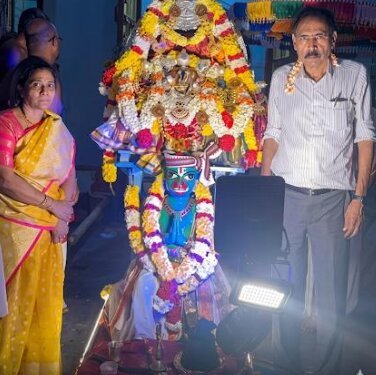 The Mahotsavam is supported by dedicated families and volunteers, including the descendants of the late Nukala Nageswara Rao Garu. With devotion and reverence, Sri Irrinki Nagesh (Additional Commissioner) with is wife Irrinki adhi lakshmi , Irrinki Sri Naresh (I.A.S), and T. Keerthi continue to uphold the temple’s legacy. Their commitment ensures that the rituals are performed authentically, preserving traditions for future generations. The colourful invitation, adorned with traditional motifs and divine imagery, reflects the grandeur of the event and highlights the temple’s role in sustaining cultural heritage.